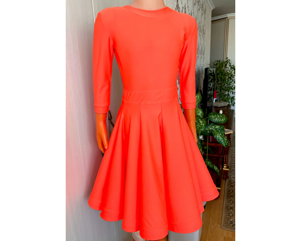 Элегантное рейтинговое платье для девочки состоящее из 2 отдельных предметов, боди и юбки 1,5 солнца из 8 клиньев. Дополнительную изящность платью придает отделка низа юбки мягким регилином.