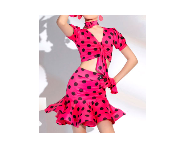 Эффектный костюм для латины выполнен из мягкого эластичного трикотажа и состоит из двух предметов - топа и юбки. Изделие декорировано яркими, принтованным горохом. Пышная юбка имеет плотную ленту, вшитую по низу изделия, придавая ему дополнительный объем. Особенностью данного костюма является сочная цветовая палитра принованных тканей. Внесите буйство красок в свою танцевальную жизнь!