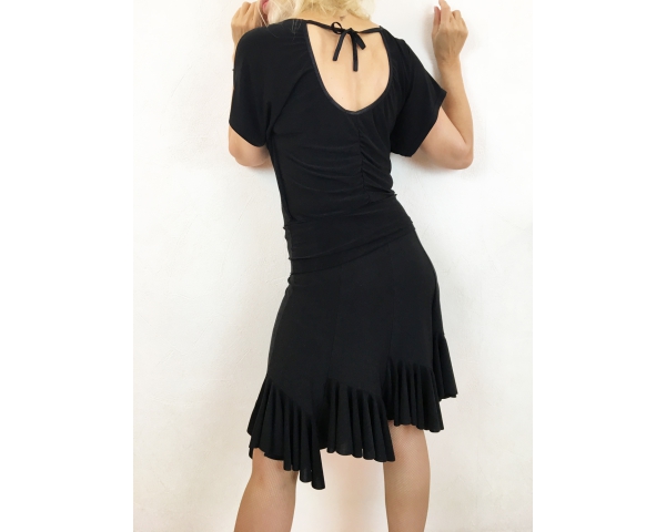 Юбка выполнена из легкой, эластичной ткани, которая не сковывает активные движения во время танца. Главным декором юбки являются вставки - воланы, которые придают юбке пышность.